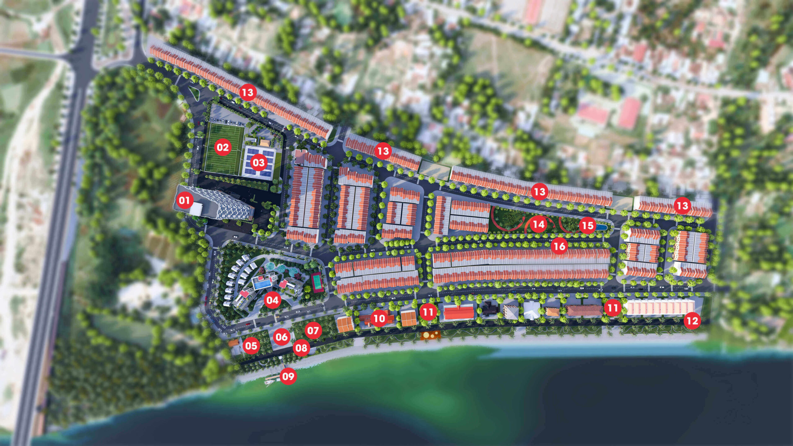 Chủ đầu tư Đạt Phương đã dành rất nhiều tâm huyết để có thể kiến tạo không gian sống xanh tại nam hoi an city. Mật độ xây dựng của toàn dự án thực tế chỉ chiếm khoảng 40%. Phần diện tích rộng lớn còn lại được ưu tiên tuyệt đối cho cảnh quan tự nhiên và giao thông nội bộ.