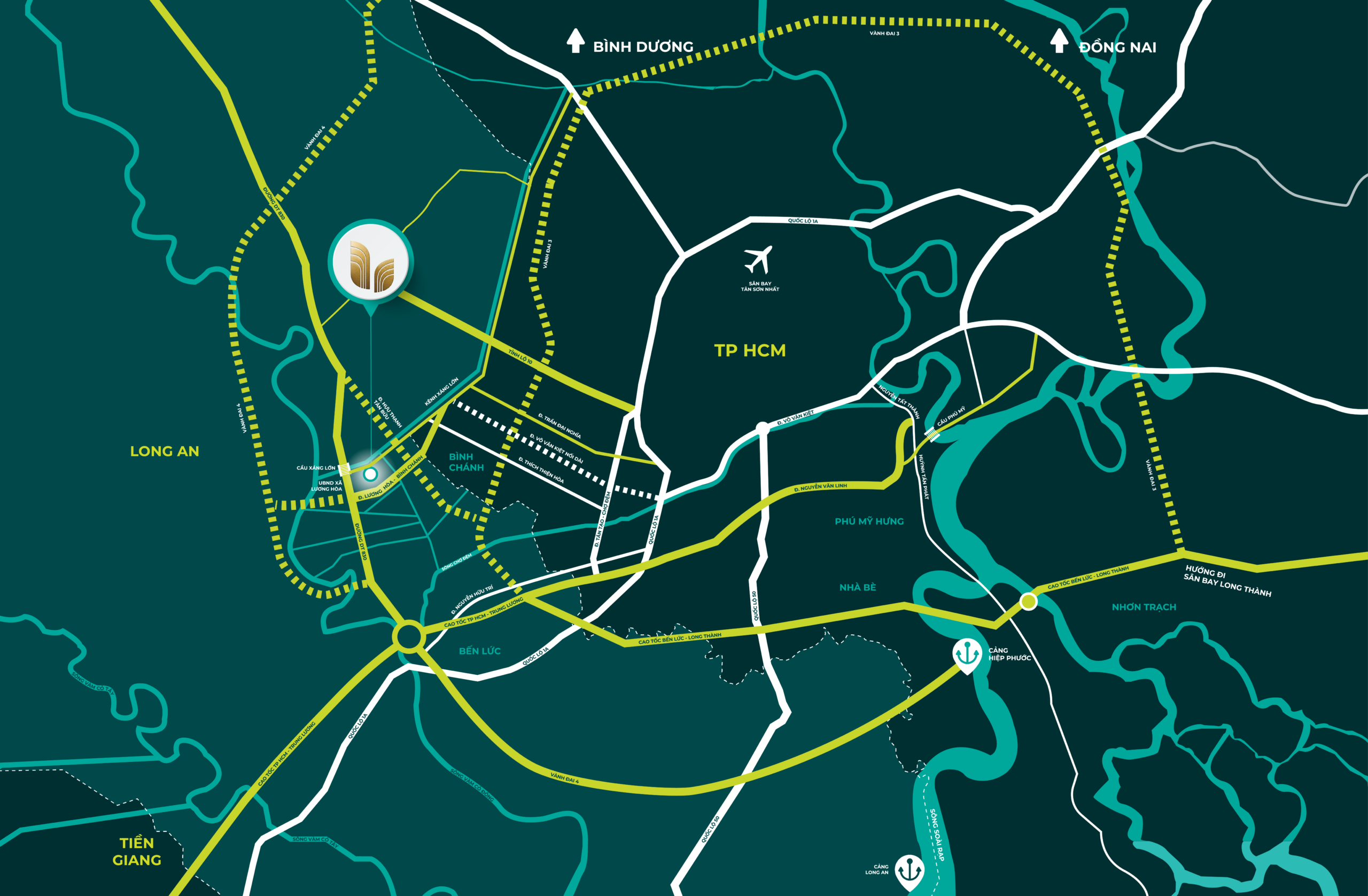 Dự án nằm tại giao điểm của các tuyến đường bộ trọng yếu và dễ dàng tiếp cận hai sân bay quốc tế lớn, tạo điều kiện thuận lợi tối đa cho việc di chuyển nội địa và quốc tế.