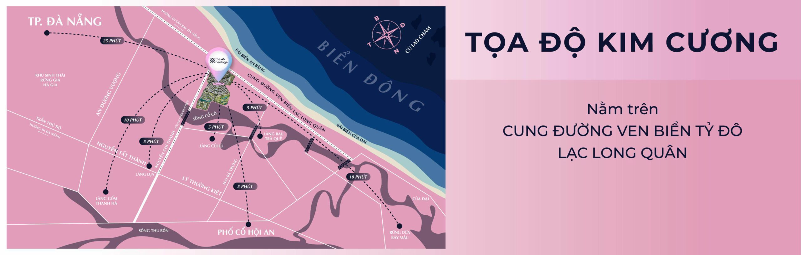 The An Heritage sở hữu mặt tiền đắt giá trên tuyến đường ven biển Võ Chí Công, trục xương sống huyết mạch kết nối sân bay Đà Nẵng với sân bay Chu Lai và khu kinh tế mở Chu Lai.