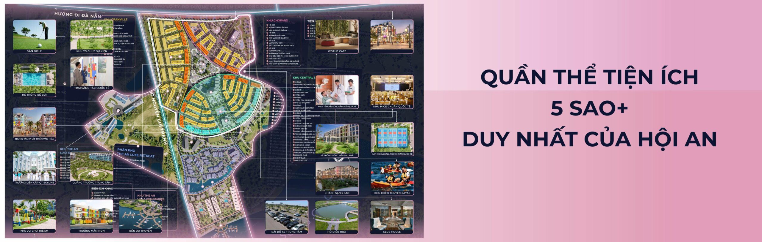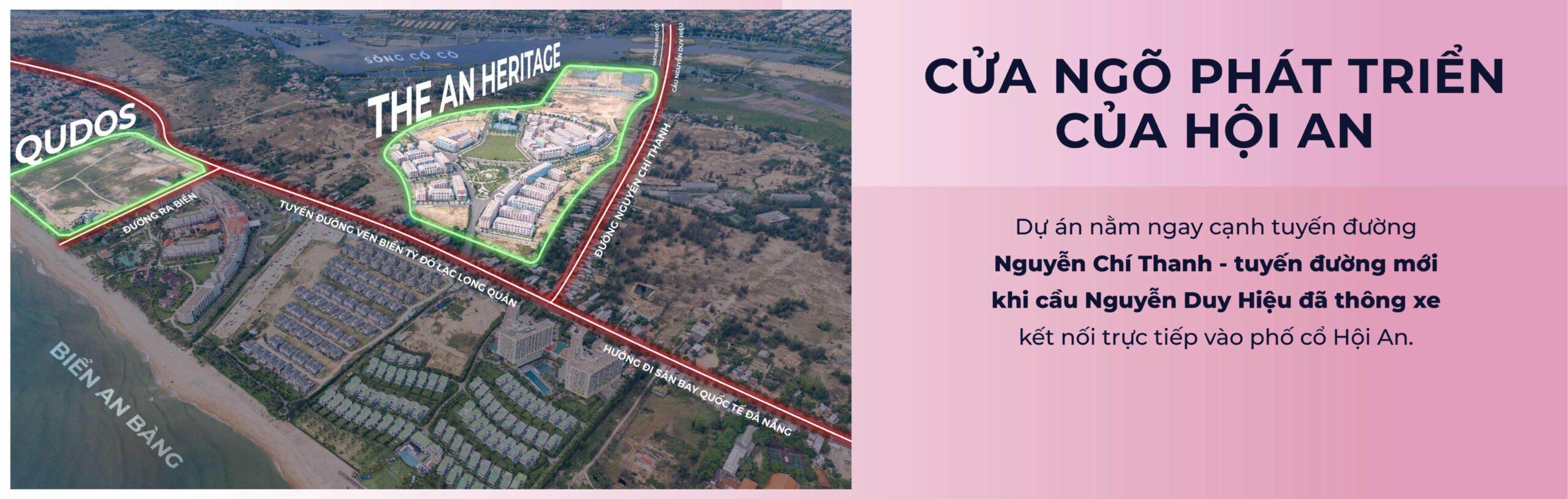 - Phía Nam: Kết nối trực tiếp với quần thể nghỉ dưỡng, giải trí quy mô lớn nhất miền Trung là Nam Hội An.