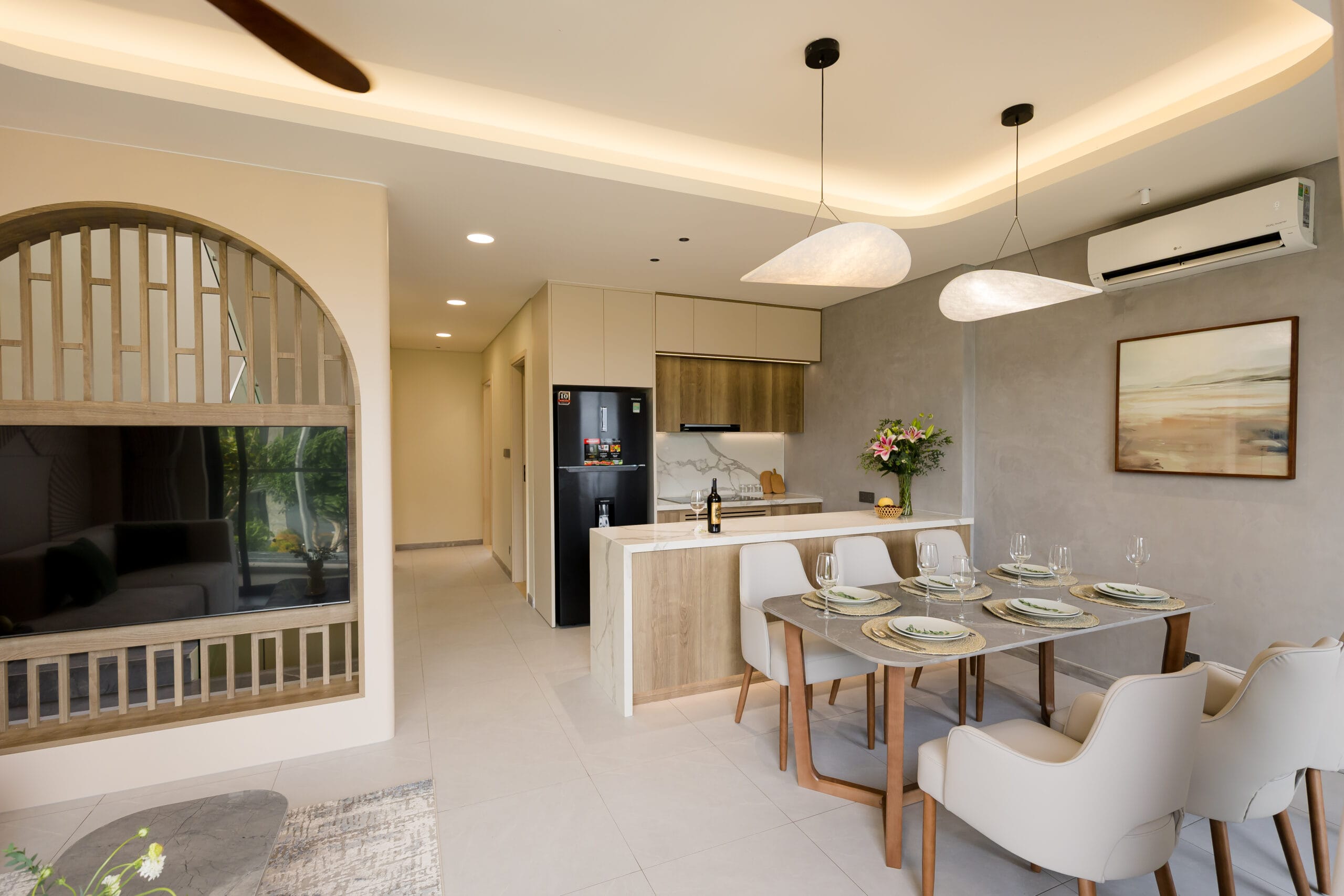 Không gian nhà mẫu Shophouse mang lại trải nghiệm trực quan về sự phóng khoáng của sàn trống suốt (Open floor) và khả năng biến hóa công năng không giới hạn. Khách hàng khi tham quan sẽ thấy được sự tinh tế trong việc bố trí các khu vực kỹ thuật, thang bộ và thang máy (tùy căn) để không lấn chiếm diện tích kinh doanh hữu dụng.