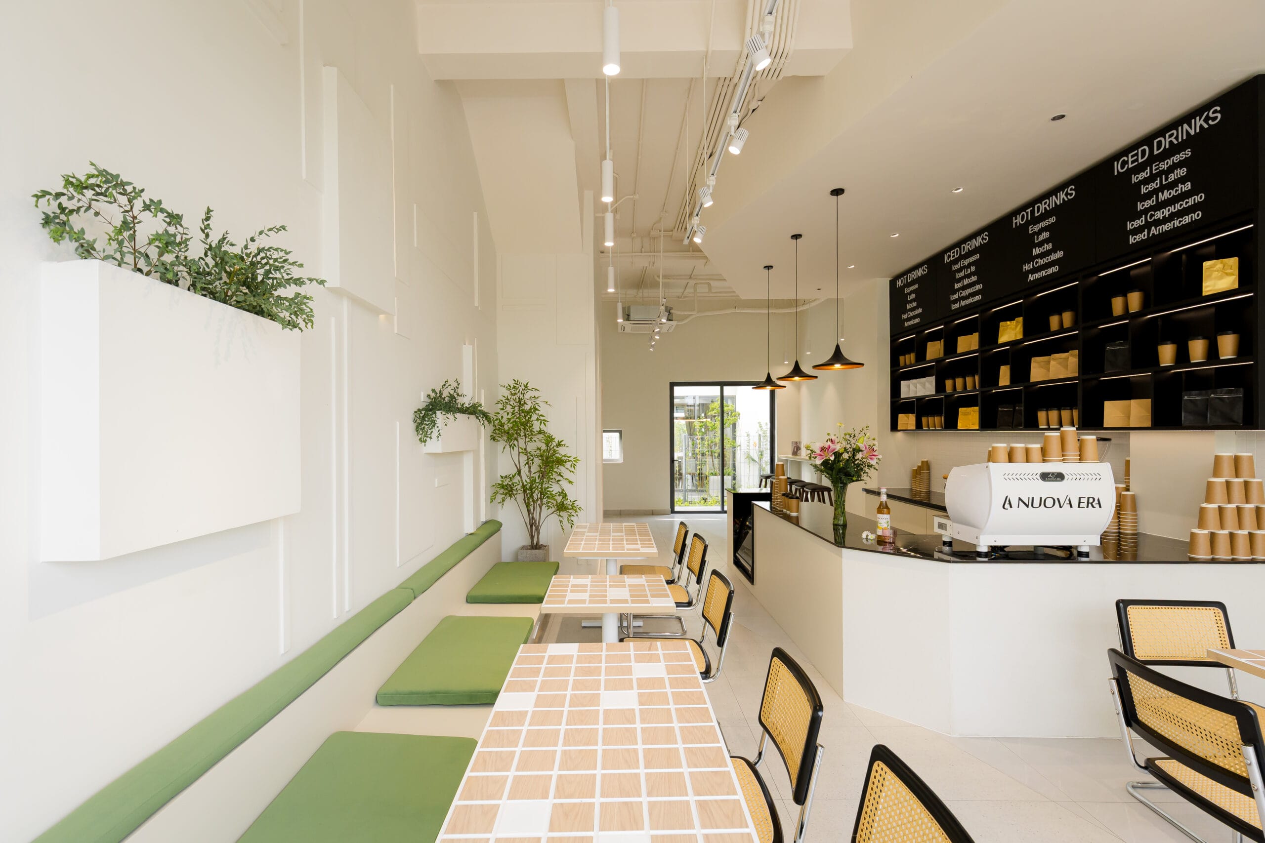 Tầng trệt của nhà mẫu thường được setup theo các mô hình Cafe-Bakery hoặc cửa hàng tiện lợi sang trọng, minh chứng cho sự “vừa vặn” của diện tích mặt bằng. Trong khi đó, các tầng lầu được thiết kế như những căn hộ dịch vụ cao cấp hoặc Penthouse để ở, phô diễn tầm nhìn bao quát toàn bộ Đại lộ 60m và sự nhộn nhịp của KCN Prodezi đối diện.